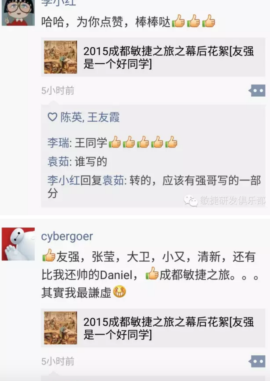 点赞的有同学,华人世界仅有的两位CSC(现为CEC),敏捷教练,Boss,同事,社区组织者,朋友和家人,感谢你们:) 注意头像上的外框