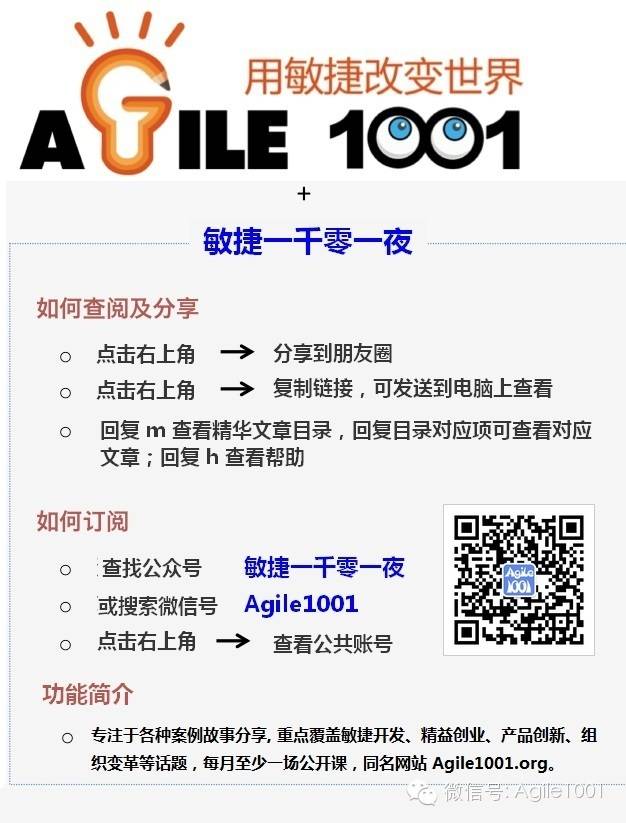 好了,真的就写到了这里了!不能再扯了,最后感谢敏捷之旅,感谢Agile1001,感谢立杰、伟忠、Bob、谢钊,感谢参与这次工作坊的所有同学,让我学到了这么多。祝愿Agile1001越办越好,我也会尽我的力量为Agile10001这个大家庭贡献更多的力量!